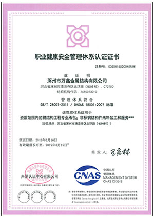 涿州市萬鑫金屬結構有限公司,自2002年成立以來,一直秉承“實現企業最大價值的同時實現員工和客戶的最大價值 ”的經營理念,堅持“一切按制度管理、一切按程序操作、一切用數據說話、一次把任務完成好”的企業作風,堅持以“安全第一、質量第一、服務第一”的企業宗旨,為客戶提供設計、制造、安裝一條龍的工程服務。